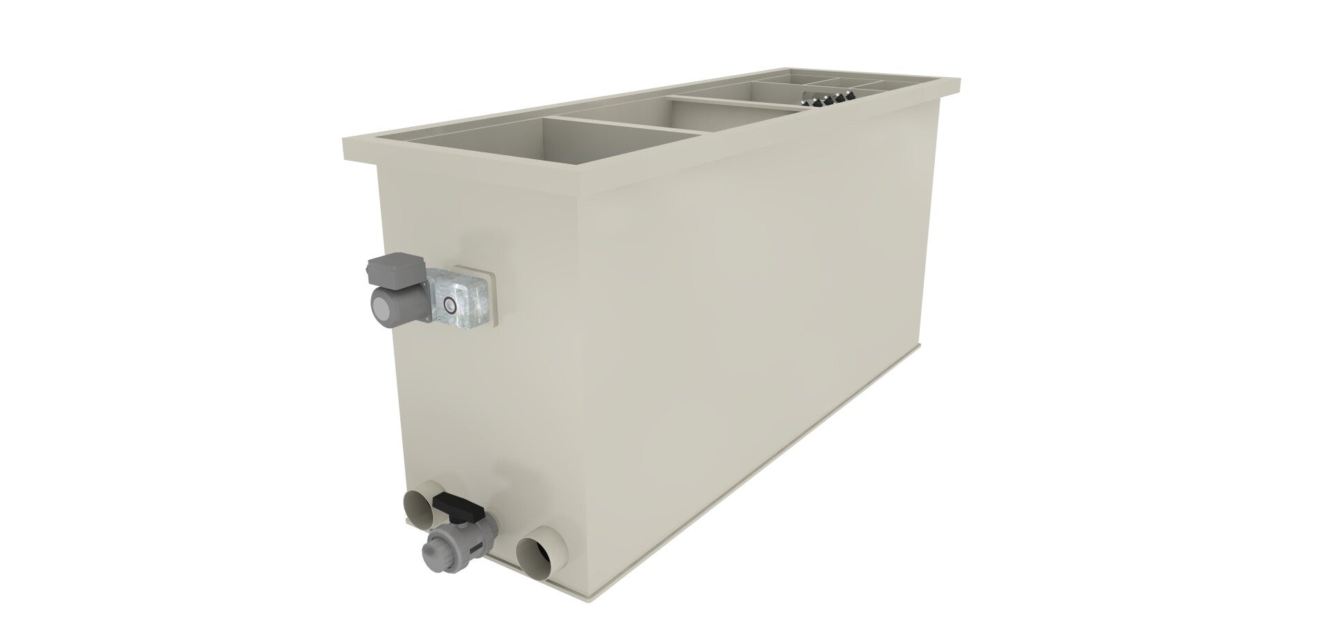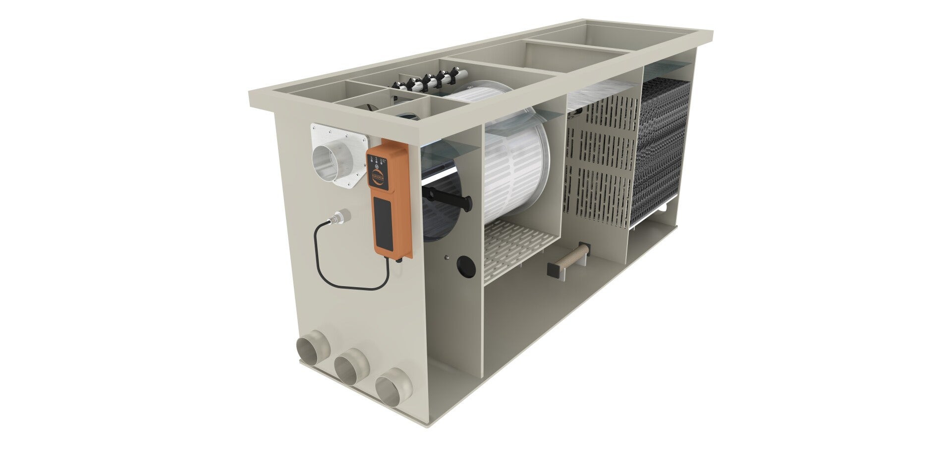 Het grote systeem voor middelgrote vijvers. Dit systeem is ontworpen als een inline model. Alle aansluitingen bevinden zich aan de hoofdzijden van het systeem. Dit model is zo ontworpen dat er meer bio-media in passen, zodat het filter meer visuitwerpselen kan verwerken, waardoor het mogelijk is om meer vissen per m3 water te houden. Zoals al onze filters is ook dit inline model opgebouwd uit betrouwbare roestvrijstalen onderdelen. Dit garandeert een lange levensduur en beperkt de onderhoudskosten tot een minimum. Het systeem is uitgerust met een UVC met hoog vermogen van 80 watt.